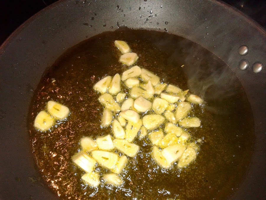 Pelamos los ajos y los cortamos en láminas.