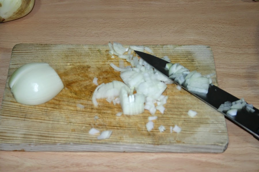 lo primero que vamosa a hacer es picar la cebolla a nuestro gusto, algunos lo hareis mas grandes, otros mas pequeños