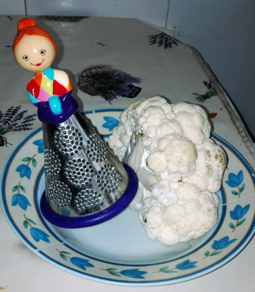 Rallamos la coliflor con la parte fina del rallador, Reservamos.