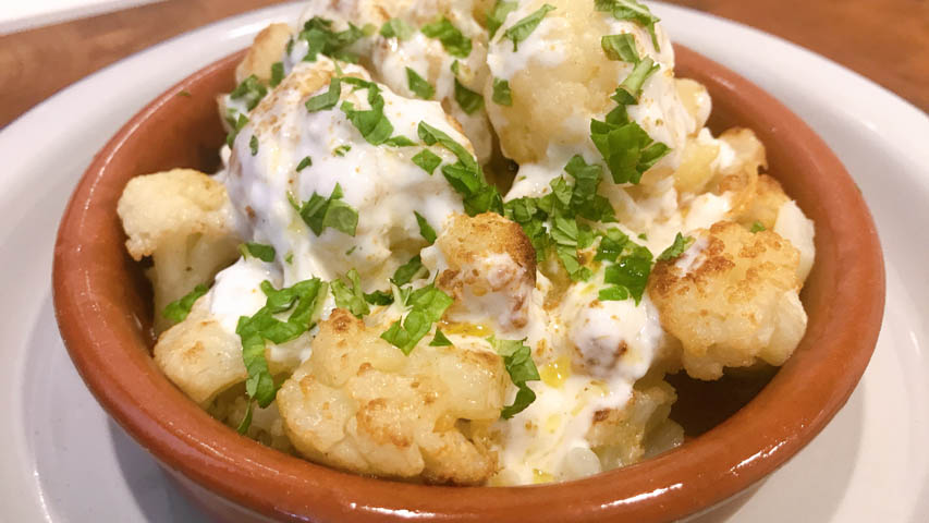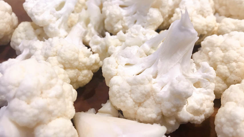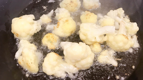 Fríe los trozos de coliflor en un dedo de aceite de girasol hasta que esté dorados. Saca a papel absorbente.