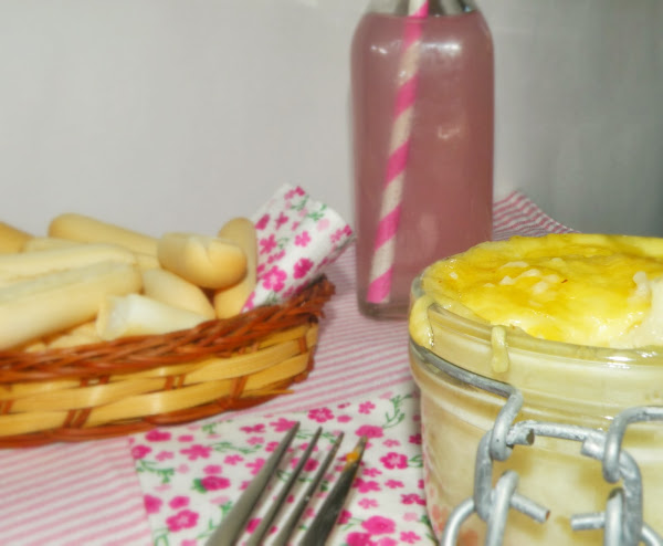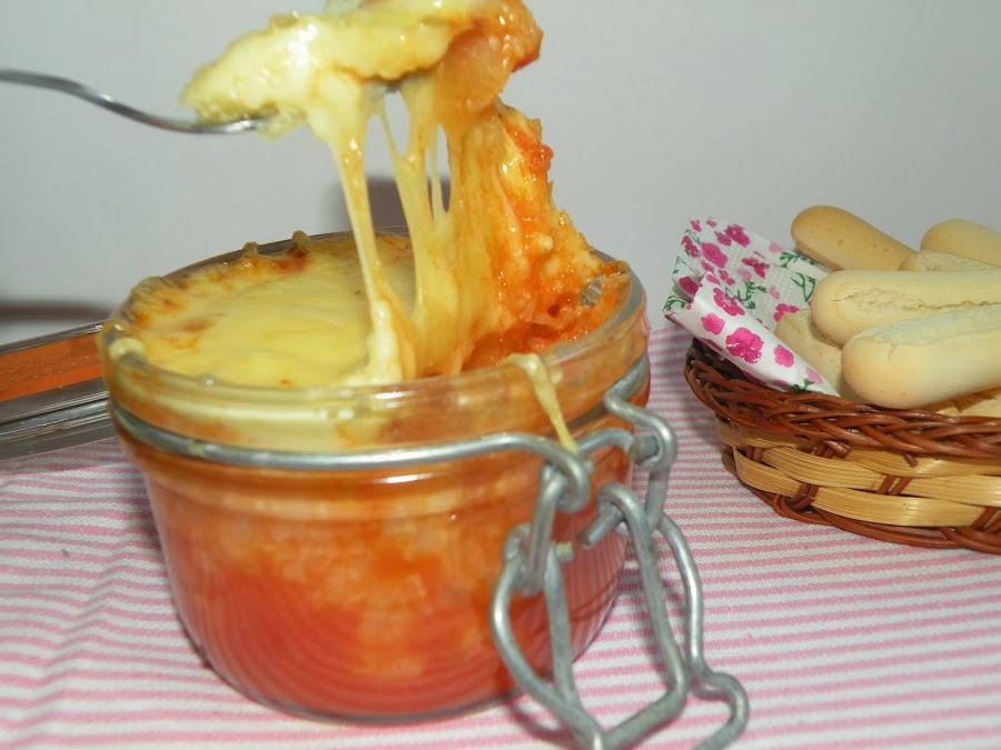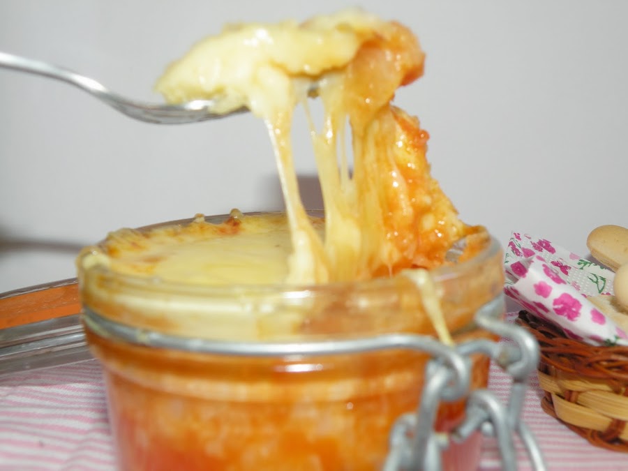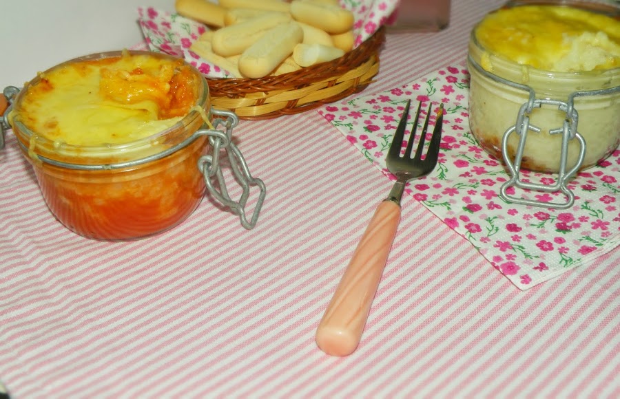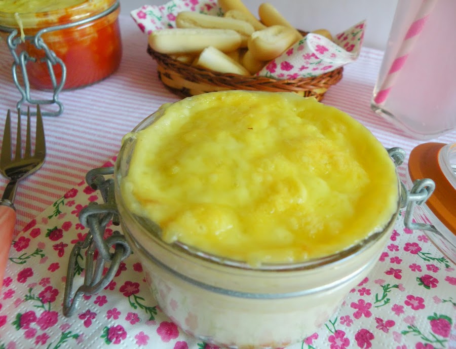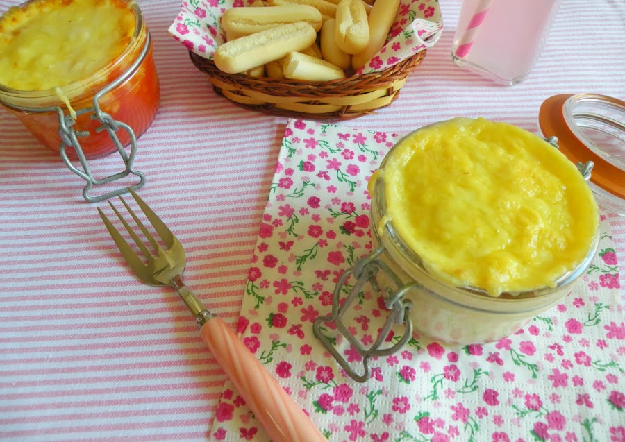 Aquí hay un tarrito de coliflores con tomate y el otro sólo con la bechamel.