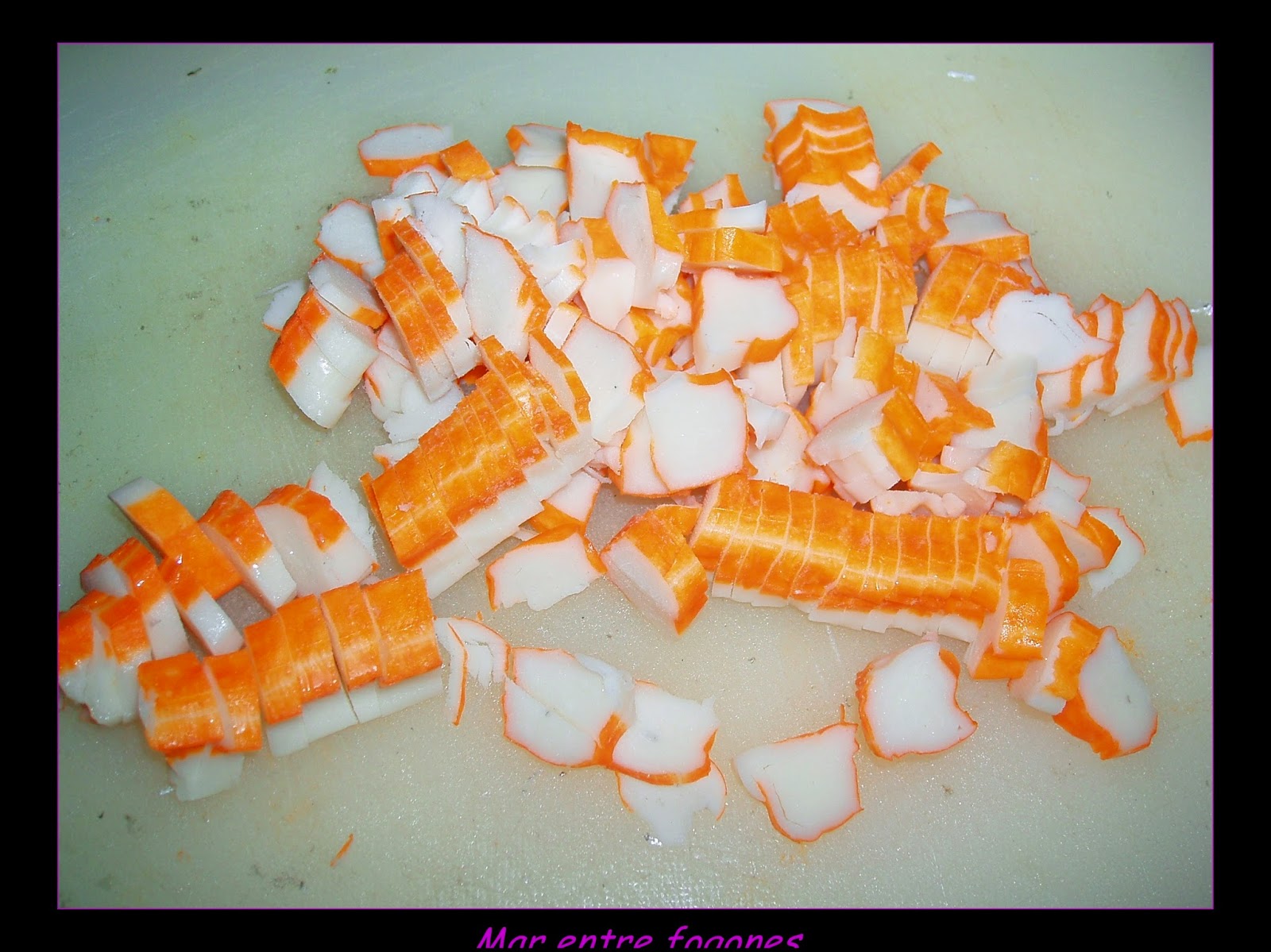 Partimos los palitos de surimi en trocitos también.