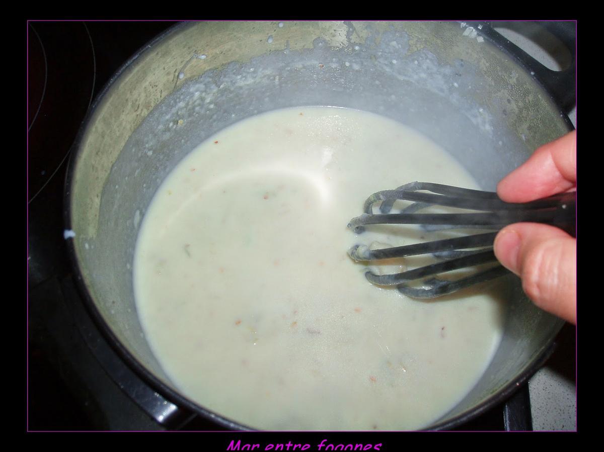 Vamos añadiendo la leche poco a poco y revolviendo hasta quenos quede la testruta de la besamel no muy espesa ni muy líquida.