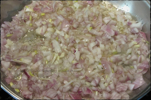 Agregarle el vino blanco y el caldo, o en su defecto agua y un poco de pastilla de caldo concentrado.