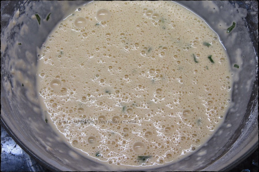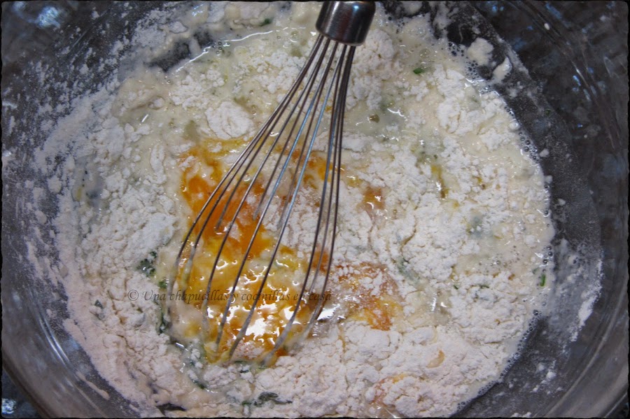 Incorporar la harina y perejil picado. Añadir sal y remover bien con unas varillas.