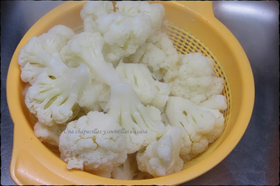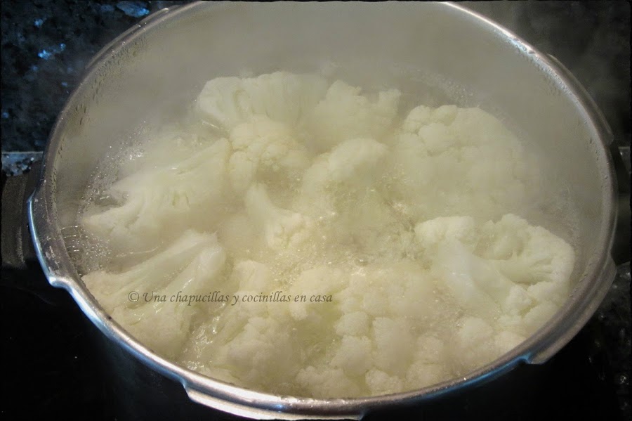 Separar la coliflor en ramilletes y poner a cocer en abundante agua con un poco de sal durante 7-10 minutos
