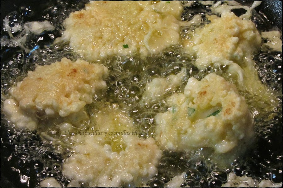 Una vez ha templado, pasar los ramilletes por la pasta y freír en abundante aceite de oliva caliente. Reservar sobre una servilleta de papel absorvente.
