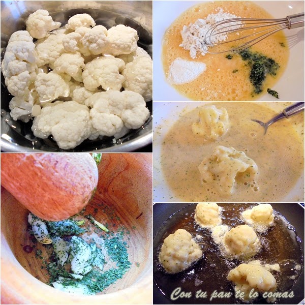 Hoy toca coliflor que ya sabemos que no gusta a todo el mundo, pero de esta manera suelen aceptarla bastante mejor. A mi en realidad me gusta de cualquier manera, simplemente hervida y aliñada con un poquito de aceite ya me parece deliciosa, pero rebozada está tan rica que podría acabar con toda sin pestañear, cosa no muy recomendable por lo que todos sabemos...