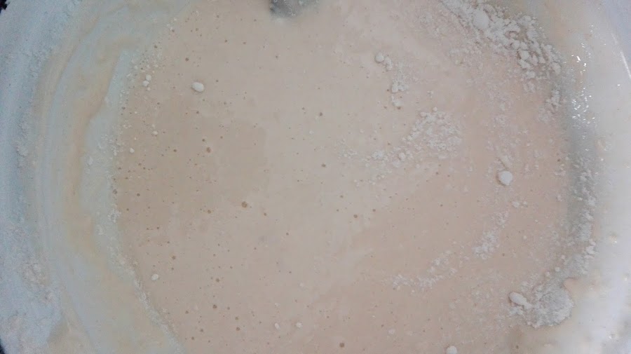 Batimos bien y añadimos ahora la harina, seguimos batiendo hasta obtener una gacha espesa con la que rebozar la coliflor.