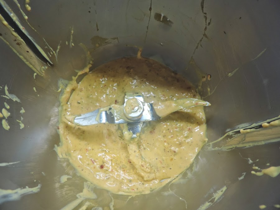 La ponemos en el vaso del thermomix y programamos 20 segundos, velocidad progresiva 6-10, para que nos quede una salsa más fina, reservamos.