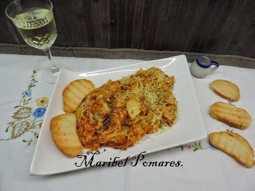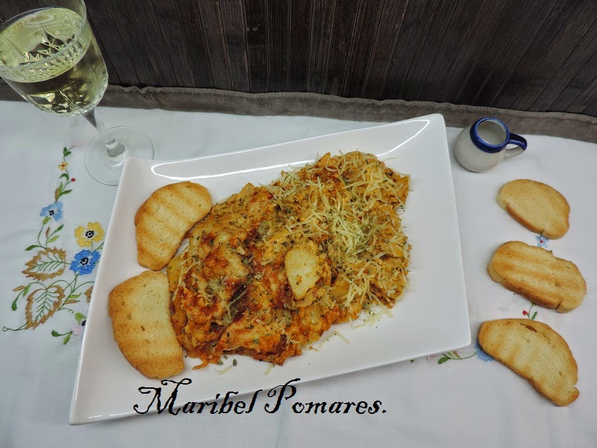 Le echamos el queso rallado por encima y ponemos las tapa doradora 8 minutos, 175º
