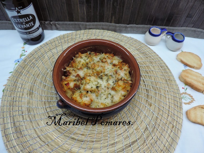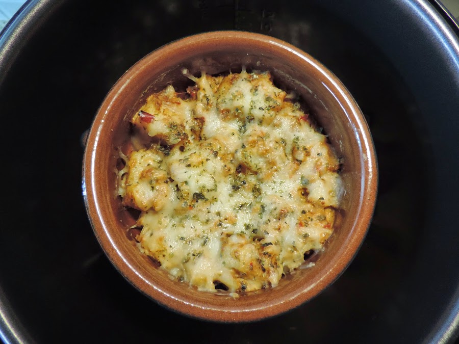Y lo ponemos a gratinar, para que estuviera alto he usado el cestillo de la olla al revés.