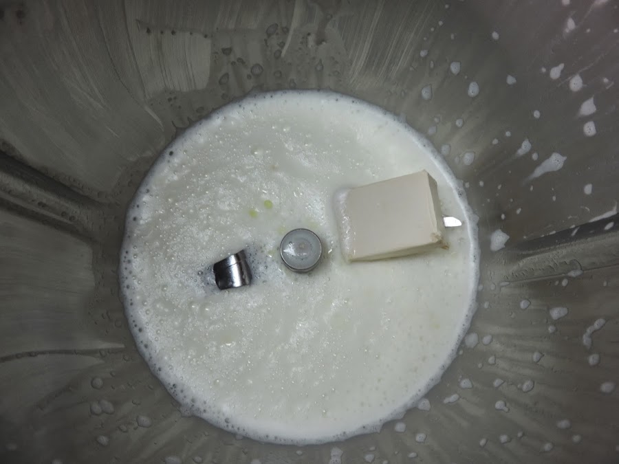 Poner la leche y el aceite de oliva en el vaso del thermomix.