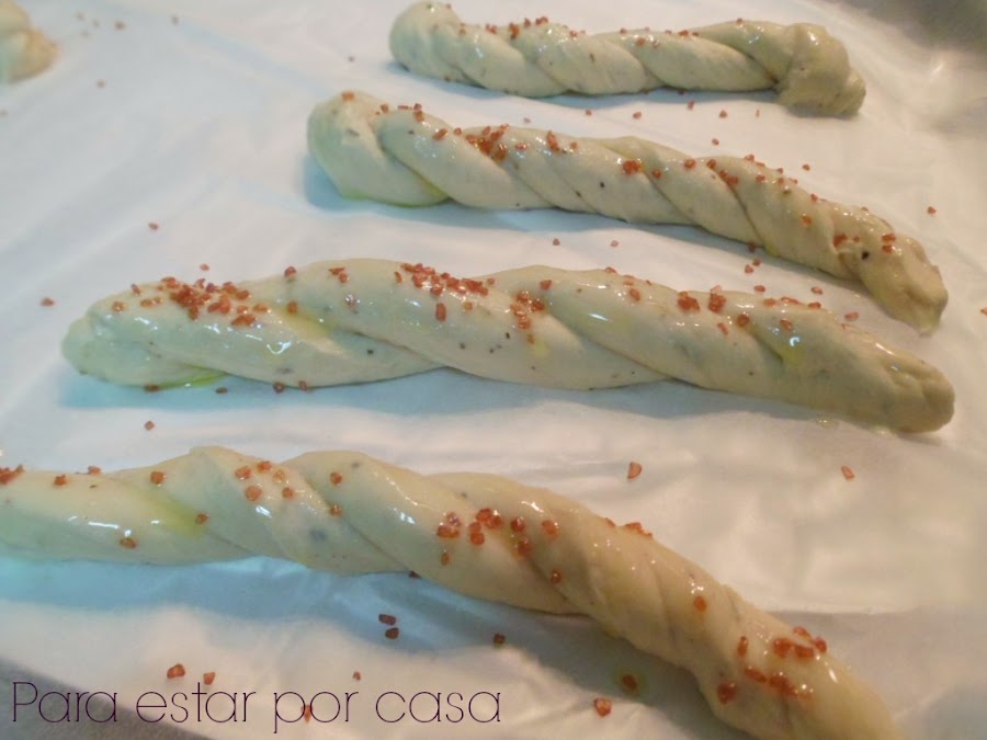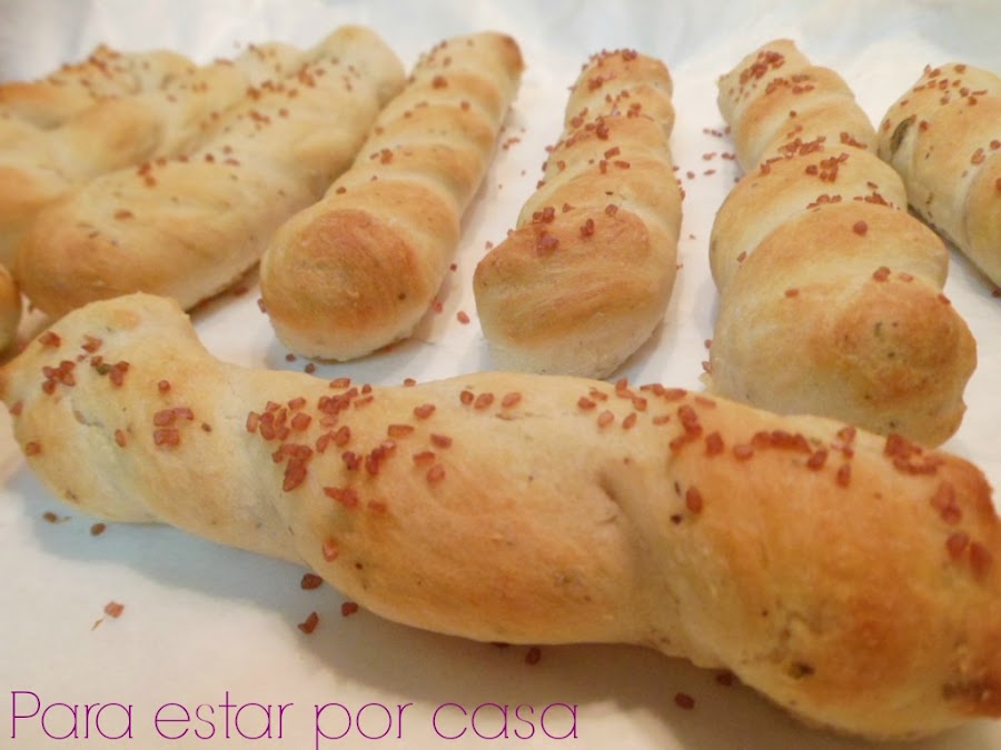 Llegué hasta esta receta a través del blog Mi mundo salado con la excusa de participar en el Día de la Harina (un evento organizado en Facebook y que os recomiendo no perderos el año que viene) y, aunque la receta básica, la del pan, es la mima, yo les he dado mi toque personal a la hora de darle sabor a estos colines.