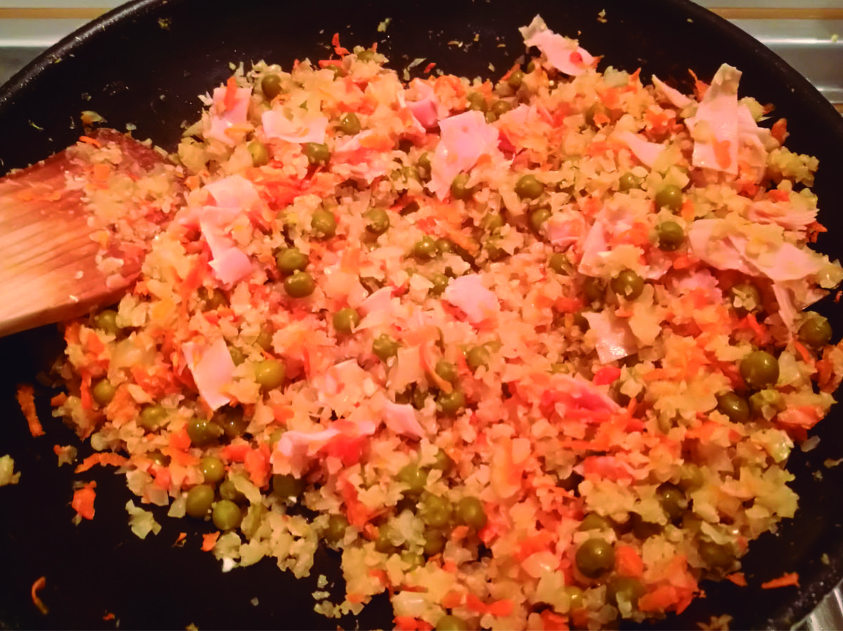En este caso es un plato bastante rápido ya que la mayoría de los ingredientes ya vienen listos para usarse. La receta está sujeta a cambios, pudiendo añadirle lo que a cada uno le guste más, siempre aprovechando la base de coliflor como sustituto del arroz, para rebajar los carbohidratos en una dieta o simplemente por probar un plato nuevo. La receta puede adaptarse para vegetarianos, podemos sustituir el pavo por tofu duro a la plancha.