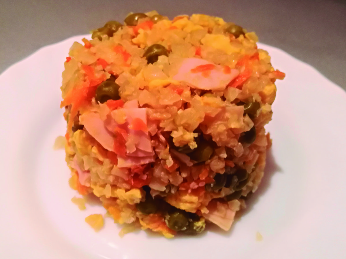 Como los ingredientes básicos de la receta son bastantes saludables la podemos comer sin problemas y el ingrediente principal que actúa como sustituto del arroz es la coliflor y tienes muchas propiedades saludables como podéis ver en el artículo 10 Beneficios de Comer Coliflor. Como está compuesto en su mayor parte de agua contiene muy pocos carbohidratos, proteínas y grasas, por ello es el sustituto ideal para tantos alimentos.