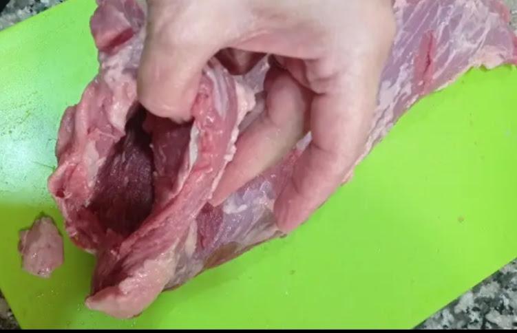 Sacar toda la grasa que recubre a la carne, y hacer un corte en el medio , continuando hacia adentro haciendo como una bolsa.