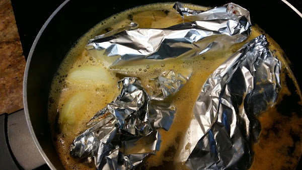 Un rape que en principio tendría que ser una cola entera pero que yo he elegido hacer recetas individuales. He comprado una pieza para cada uno. Es una forma muy rápida de cocinar un rape y sin casi ninguna complicación. En las instrucciones de la receta pone que la dificultad es media y creo que es por el momento de la cocción del rape y al sacarlo, ya que al estar envuelto en papel de aluminio podrías quemarte con el caldo. Tranquilidad a la hora de sacarlo y una buena espátula y ningún problema. Espero que os guste.