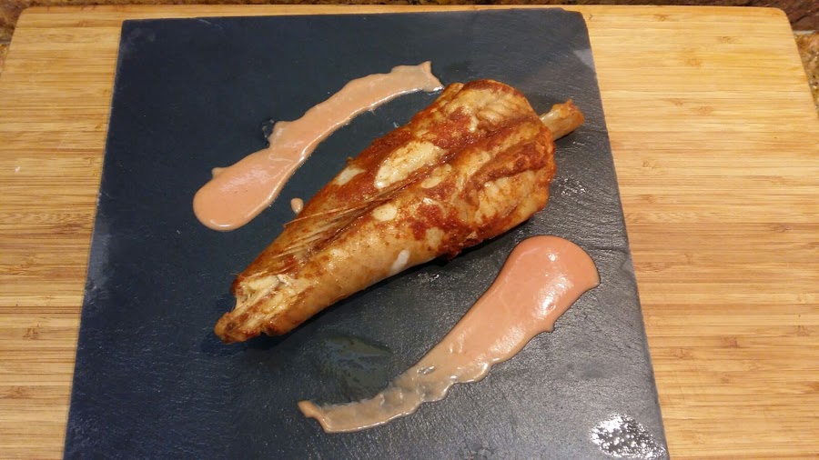 Y listo, a servir, una colita por persona, la salsa rosa y unas hojas de lechuga.