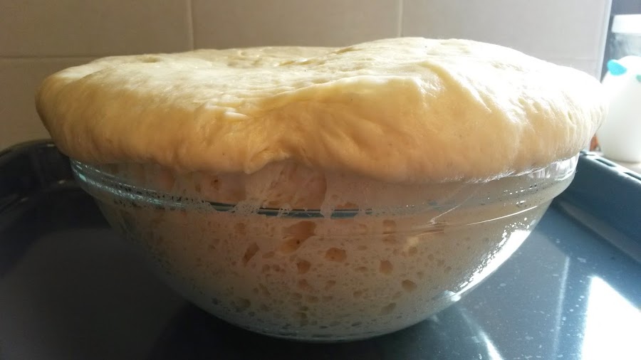 He empezado con la elaboración por la noche, después de la cena, porque así la fermentación más importante de la masa la podía hacer durante toda la noche y yo podía retomarla por la mañana después de desayunar con calma.