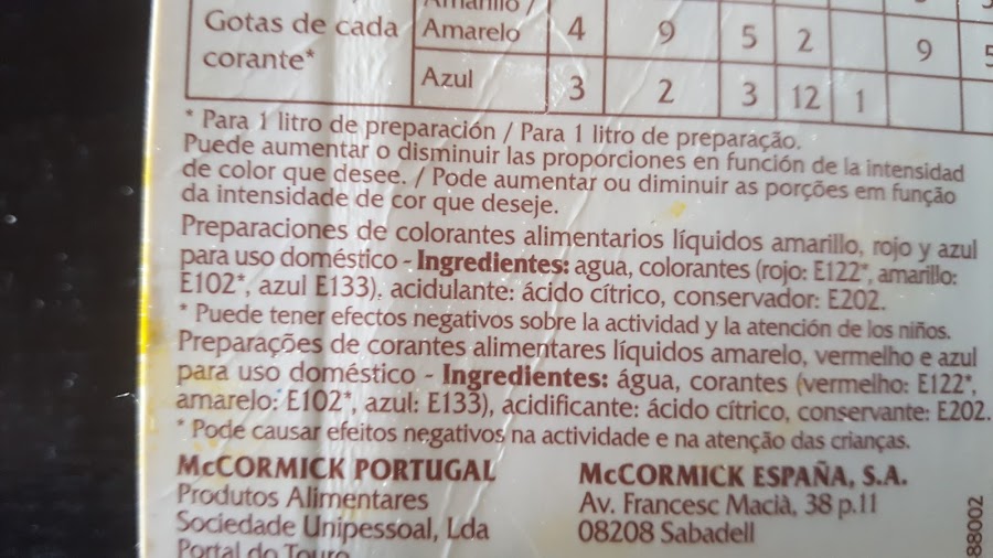 Yo no lo me voy a pensar más y desde que leí esa etiqueta trasera en un bote de colorante amarillo me he pasado a colorantes naturales como sean el azafrán o la cúrcuma, que además de naturales nos dan aroma y sabor sin peligro para nuestra salud