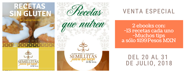Por último, les cuento que estos días tengo una venta especial de fin de mes. Se trata de dos ebooks buenísimos que les van a ayudar desde a cambiar de hábitos, hasta a preparar postres y alimentos más nutritivos, de manera fácil y deliciosa.