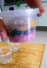 Lo único que hay qué hacer es mezclar los ingredientes de cada color, por separado.