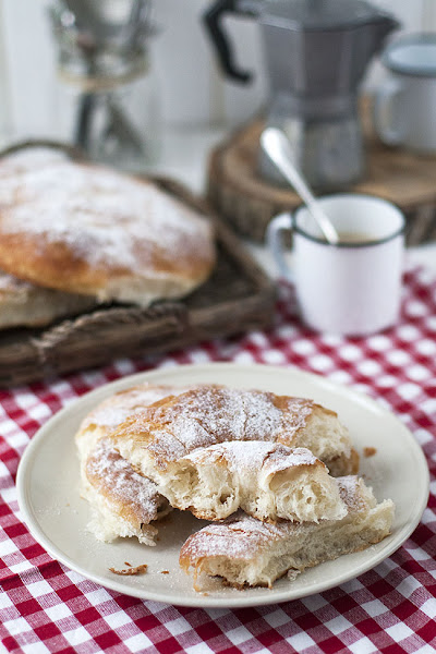 A la mañana siguiente se calienta el horno a 200ºC y se cuecen unos 12 minutos. Una vez frías se espolvorean con mucho azúcar molido y ya podemos disfrutar de un buen desayuno.