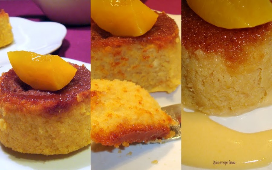 Aquí podéis ver la receta de un pudding hecho con melocotón en almíbar