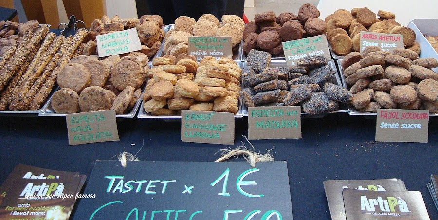 Artipà, es de Vic, en la Comarca de Osona, nos mostraron galletas elaboradas con harinas ecológicas de más de 35 variedades distintas. Son especialistas en hacer alimentos para personas con intolerancias alimentarias. De buen grado me hubiera tomado una taza de te con alguna de estas maravillas pero como están también en Travesera de Gracia 245, una tarde de estas les haré una visita.