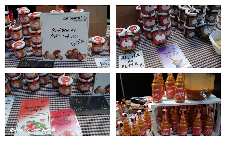 Cal Senzill, un stand que me enamoró inmediatamente. Productos envasados con una cuidada elaboración. Desde los más clásicos como el sofrito, pero no un sofrito cualquiera, sino nada más y nada menos, que confitado. Hasta lo más originales, como la mermelada de aceite de oliva o la de limón al gin...También tienen una mostaza de nueces que es toda una tentación.