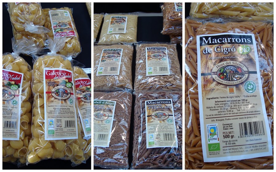 Pasta de harina blanca, integral y de garbanzos bio. Si os apetece un plato light con pasta integral aquí tenéis la receta de uno. La podéis hacer también con macarrones o galets.