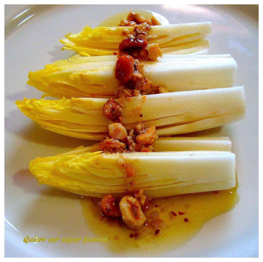 En las ensaladas es donde más se nota la calidad del aceite. Esta de endivias con vinagreta de avellanas me viene muy bien para la ocasión.