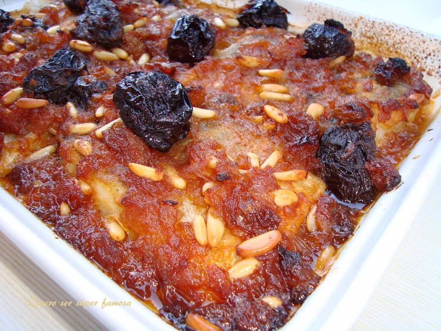 Aquí bacalao de Cuaresma con ciruelas y piñones