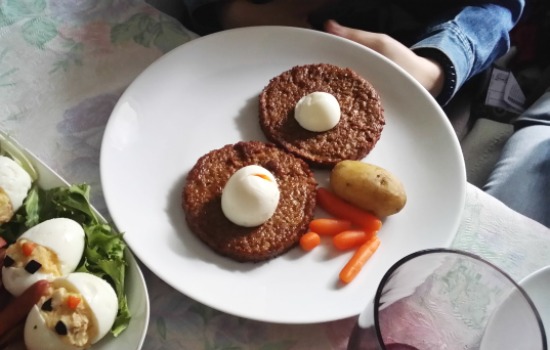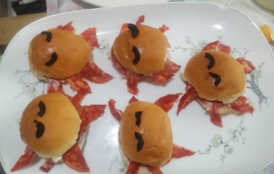 Y unas hamburguesas que simulaban un cangrejo (la pista también es el plato)