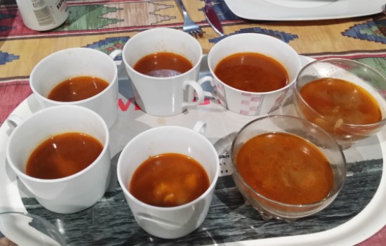 A continuación vino un consomé de pescado hecho con gambas y cangrejos.