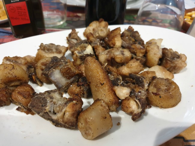 Para representar la Peste porcina (clásica y africana) Fela nos trajo un rabo de cerdo. A la vez, nos enseñó la pista clave que acompañaba al plato: un termómetro, para asemejar a la fiebre, la fiebre porcina.