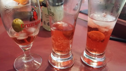 Empezamos la comida con una aperitivo que no formaba parte del tema: picoteo y una bebida bien rica: vermut con sifón.Con su aceituna y todo...