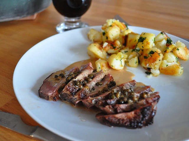 Este plato se prepara con carne fileteada de ganso o pato. Lo habitual es servirlo con salsa de naranja y una guarnición de patatas asadas, cuscús o arroz.Merluza al beurre blanc