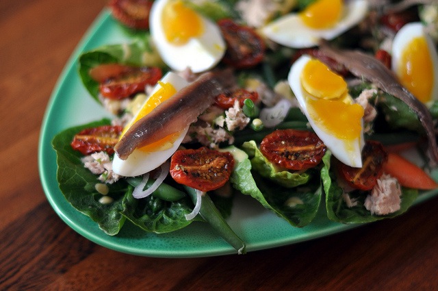 Este plato se traduce al español como ensalada nizarda. Es un plato que surgió en la región de Niza, y que destaca por su gran atractivo visual fruto de la mezcla de colores que se logra con el uso de diversos ingredientes; huevos duros, tomates, pepinos, lechuga, atún, patata cocida, anchoas, aceitunas negras, etc. Todos estos ingredientes se sirven regados con diversas vinagretas. Magret de canard