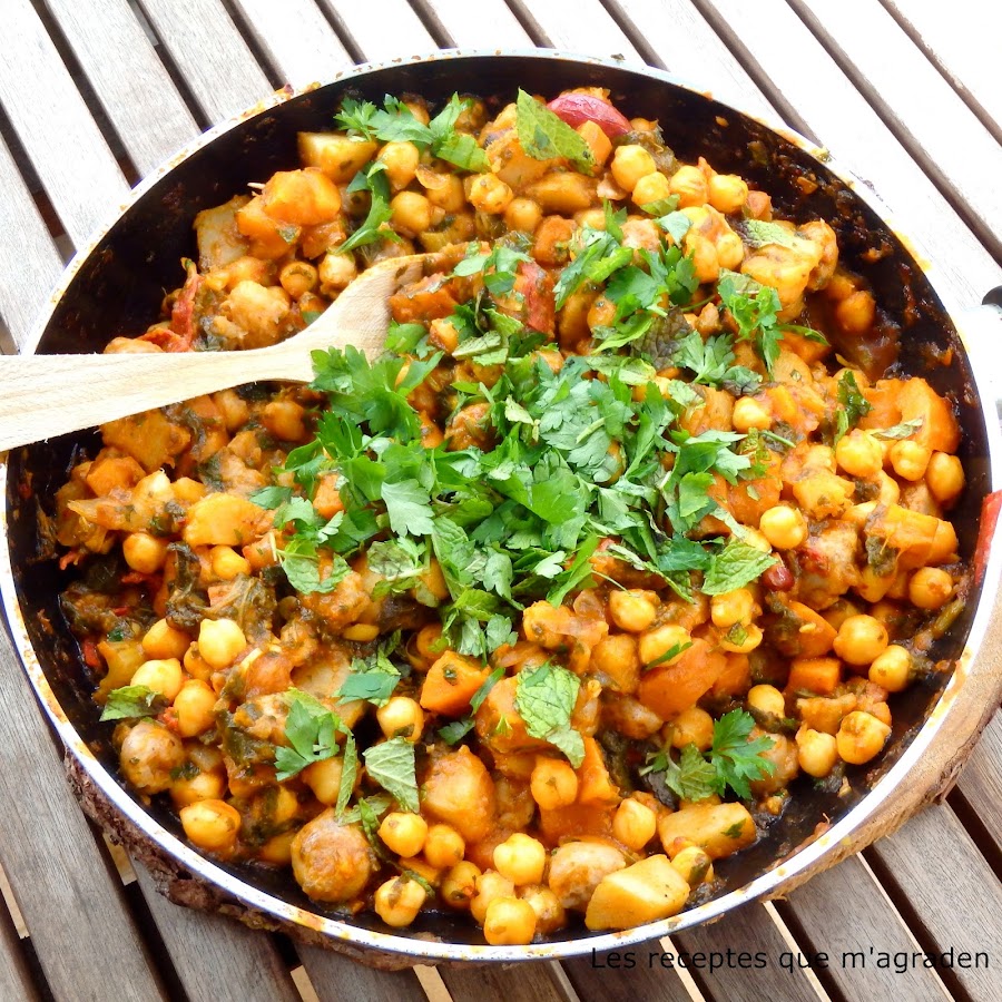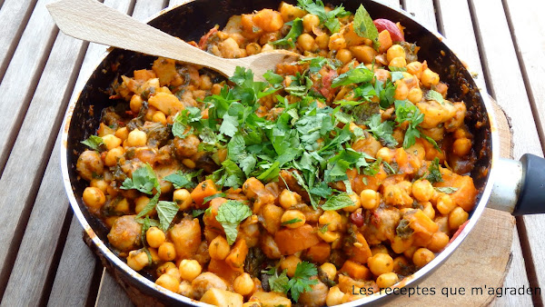 Como aprovechar restos de cocido , deliciosos garbanzos especiados con verduras, ingredientes: