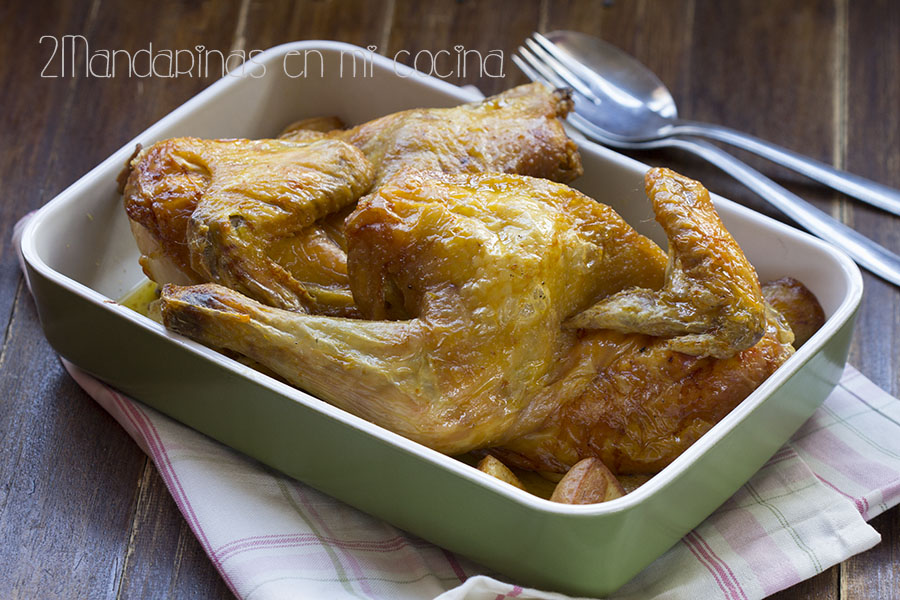 5. Le damos la vuelta al pollo y horneamos otros 30 minutos.