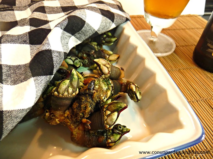 5.- Luego retíralos inmediatamente, escúrrelos, llévalos a una fuente y tápalos con un paño para que lleguen a la mesa bien calentitos, que es como más se aprecia su sabor (aún hay gente aquí en Madrid que se cree que los percebes se comen fríos).