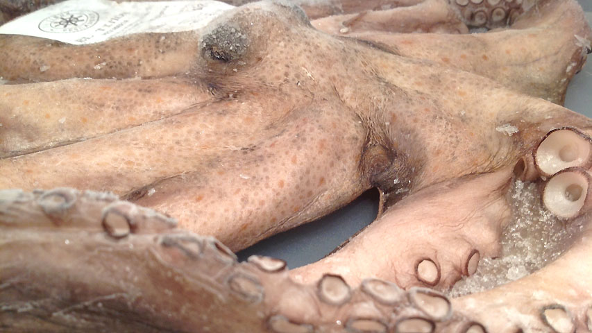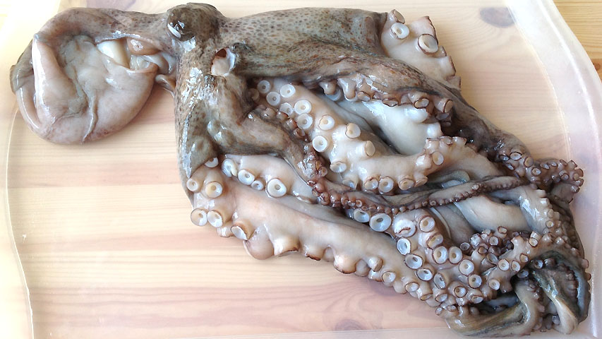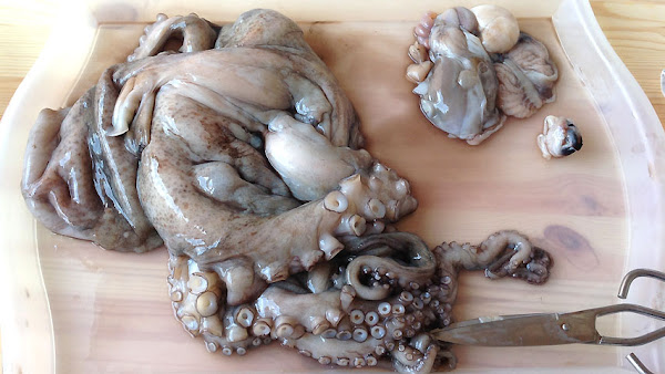 Aquí tengo el pulpo descongelado. Ahora hay que proceder a limpiarlo.