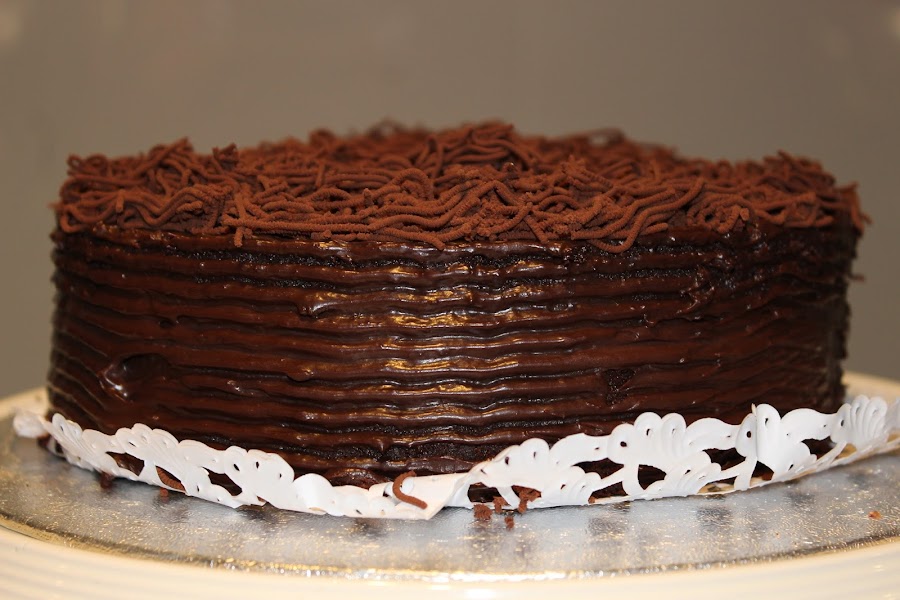 Si la temperatura ambiente fuera muy alta, puedes dejar el bizcocho untado con la crema de chocolate 30 MINUTOS EN LA NEVERA para poder formar las estrías de los bordes sin problema una vez haya enfriado.