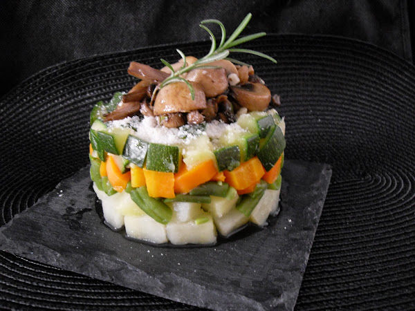 3. En "Paprika en la Cocina" Rosa nos deja una receta de Timbal de verduras con champiñones... yo me pido el aliño con alioli ;P