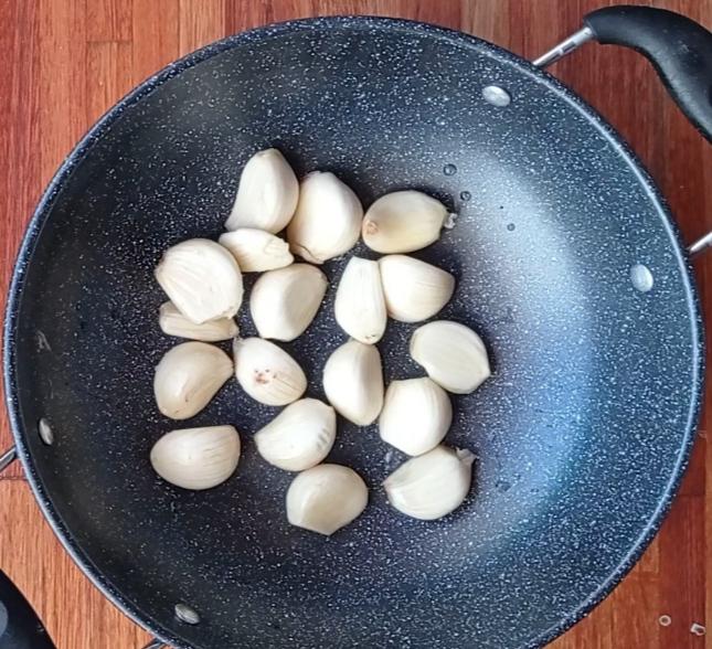 Ponemos los ajos pelados en una fuente para horno pequeña para no desperdiciar aceite, ya que el aceite debe cubrirlos y es aceite de oliva, y se lleva a una temperatura de hasta unos 150 grados, durante casi una hora.Sobre la hornalla