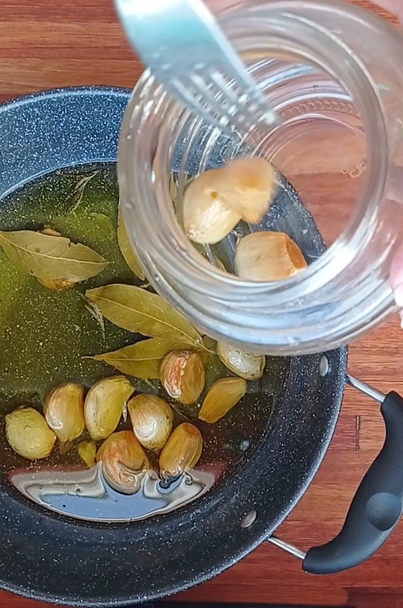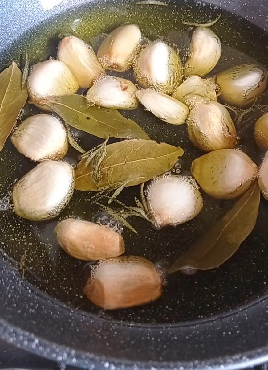 Los ponemos en sartén u ollita y cubrimos con aceite, y se cocina a fuego bien bajo, tratando que el aceite no hierva de forma fuerte, por eso es recomendable el fuego corona por unos 40 a 45 minutos hasta que estén tiernos.En ambos casos se les agrega hierbas, como romero, hojas de laurel, albahaca , tomillo, salvia, etc.