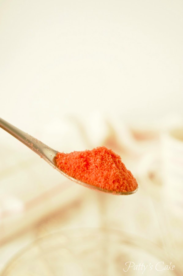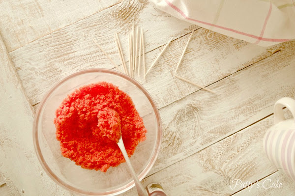 He visto varios métodos para hacerlo pero he querido experimentar con éste primero y ha salido bien. Si otro día hago otro, ya os lo diré. De momento, lo que he hecho es teñir con colorante alimentario el azúcar, primero. De esta forma tenemos azúcar normal, de cristales más o menos grueso, coloreada. Este azúcar nos sirve para todas las preparaciones que he citado anteriormente también.