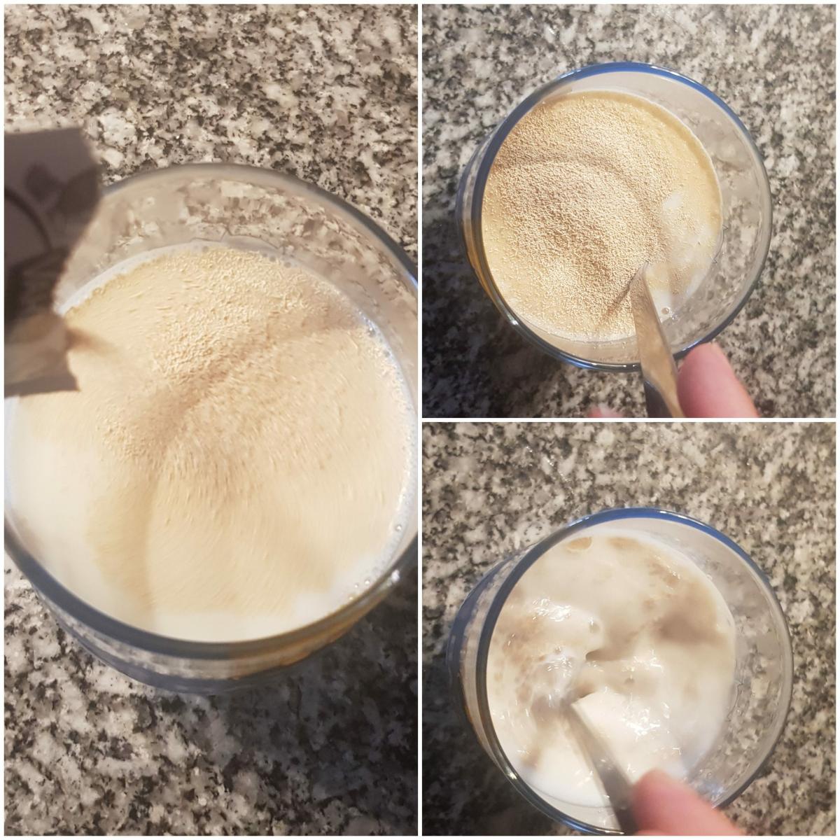 Tiempo necesario: 3 horas.Calentar la leche Calentamos la leche en el microondas unos segundos, que esté a menos de 40ºC , añadimos la levadura, removemos bien y reservamos unos minutos.